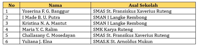 Berikut adalah daftar nama peserta yang lolos ke babak final yang akan diselenggarakan pada Selasa, 21 Oktober 2025 Pukul 10.00 WITA.